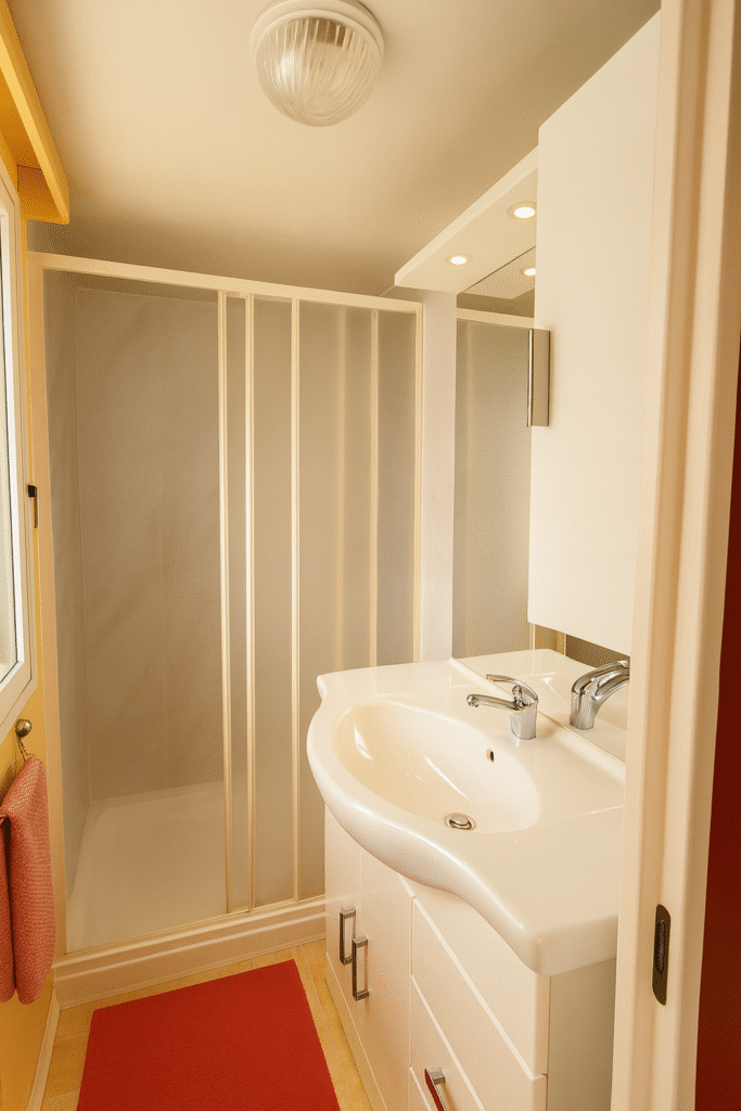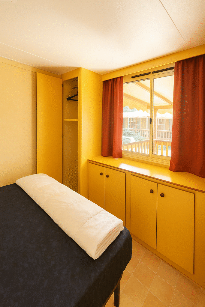 De mobile home beschikt over twee slaapkamers met in totaal vijf vaste bedden, een moderne badkamer met douche en wastafel en een apart toilet. Zomerdekbedden en kussens zijn aanwezig. Bedlinnen neem je zelf mee of huur je eenvoudig via de camping.
